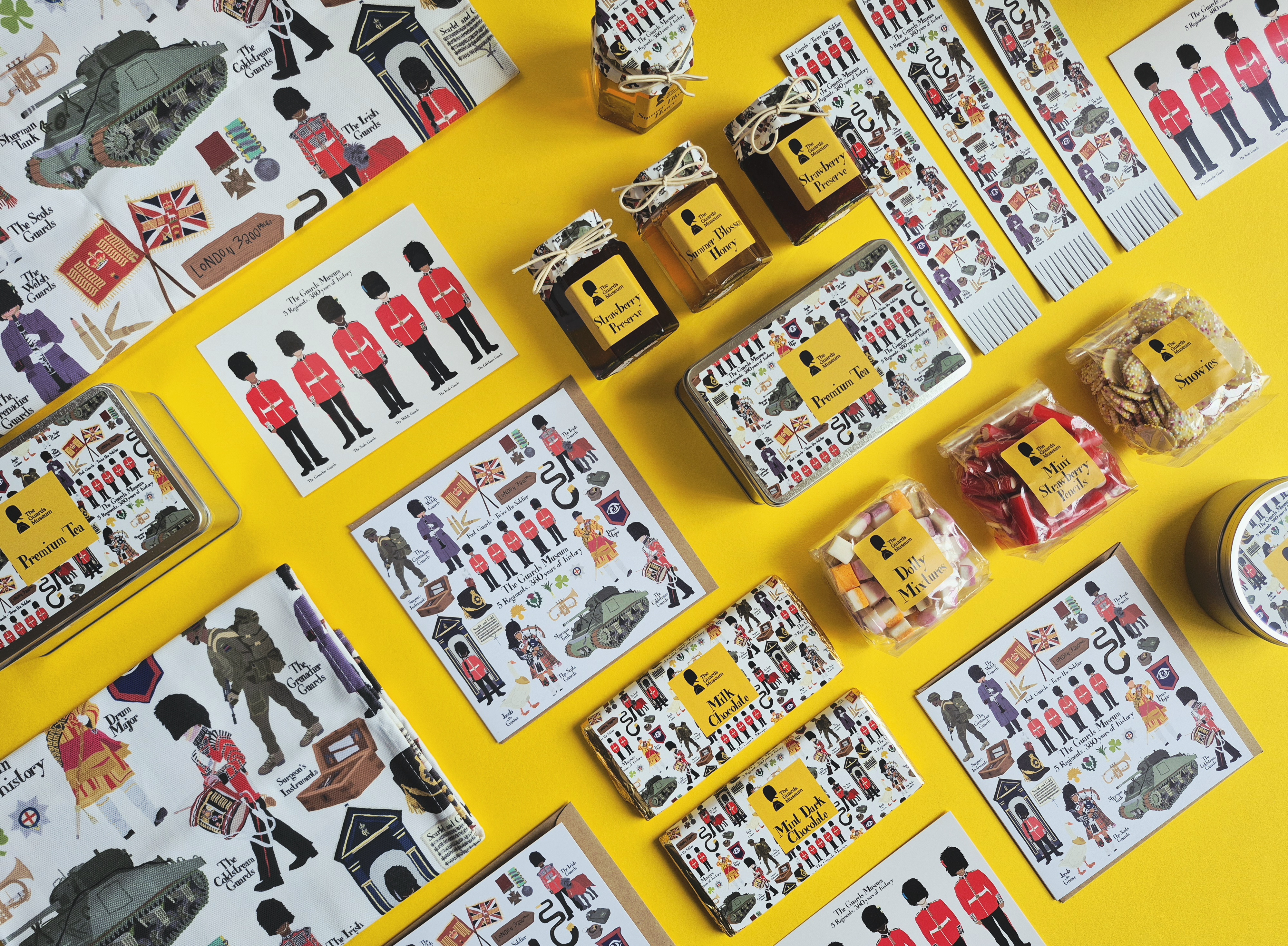 Shop the full range of products Designed by Esther for the Guards Museum: from postcards to tea towels, from bookmarks to honey.